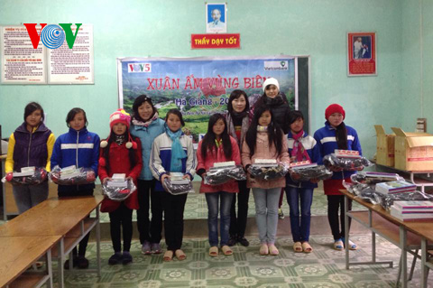 โอกาสนี้ เราขอแนะนำกิจกรรมกุศลของส่วนกระจายเสียงต่างประเทศวีโอวี 5 ของเราต่อคุณแต๋วและท่านผู้ฟังทุกท่าน พวกเรามีกองทุนสำหรับเด็กชนกลุ่มน้อยในเขตเขา ซึ่งเจ้าหน้าที่วีโอวี 5 ทุกคนจะบริจาคเข้ากองทุนดังกล่าวในทุกๆเดือนแล้วพอถึงปลายปี คือก่อนตรุษเต๊ดประเพณี พวกเราจะจัดคณะลงพื้นที่มอบสิ่งของที่จำเป็นต่างๆ เช่น ผ้าห่ม เสื้อกันหนาว หนังสือตำราเรียน นม น้ำมันพืชและบะหมี่ให้แก่ชนกลุ่มน้อยในเขตเขา เขตทุรกันดารและเขตที่อยู่ห่างไกลความเจริญ โดยในช่วงวันที่ 8-11 มกราคมที่ผ่านมา พวกเราได้จัดคณะลงพื้นที่ตำบลสินก๊าย จังหวัดห่ายาง สำหรับรายละเอียดเกี่ยวกับกิจกรรมการกุศลนี้ ท่านสามารถดูได้บนเว็ปไซต์ของเราในส่วนคลีปข่าว ซึ่งก็ขอให้ท่านผู้ฟังทุกท่านสนับสนุนโครงการกุศลนี้ของพวกเราด้วย ส่วนเงิบบริจาคของผู้ที่มีใจกุศล เราก็นำไปซื้อสิ่งของที่จำเป็นเพื่อมอบให้แก่ประชาชนชนกลุ่มน้อย สำหรับแผนการในปีนี้ พวกเราจะเชิญชวนให้ผู้ที่มีใจกุศลบริจาคเงินเพื่อก่อสร้างโรงเรียนให้แก่เด็กๆในเขตเขาที่ยากจนภาคเหนือเวียดนาม