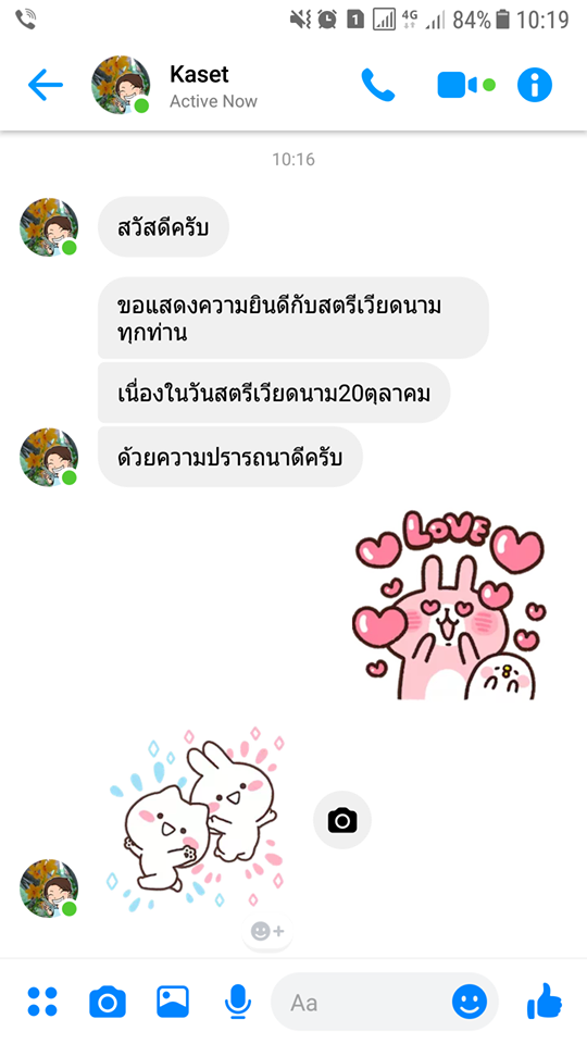 ในโอกาสวันสตรีเวียดนาม 20 ตุลาคม ทางเรายังได้รับคำอวยพรจากอาจารย์ เกษม ทั่งทอง ซึ่งขอขอบคุณอาจารย์เป็นอย่างมากค่ะ นี่คือการให้กำลังใจให้นักข่าวหญิงพยายามฟันฝ่าอุปสรรคต่างๆเพื่อตอบสนองความต้องการที่นับวันเพิ่มมากขึ้นของผู้ฟังทุกท่านค่ะ