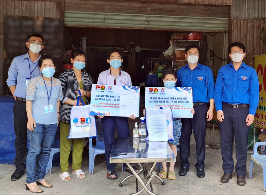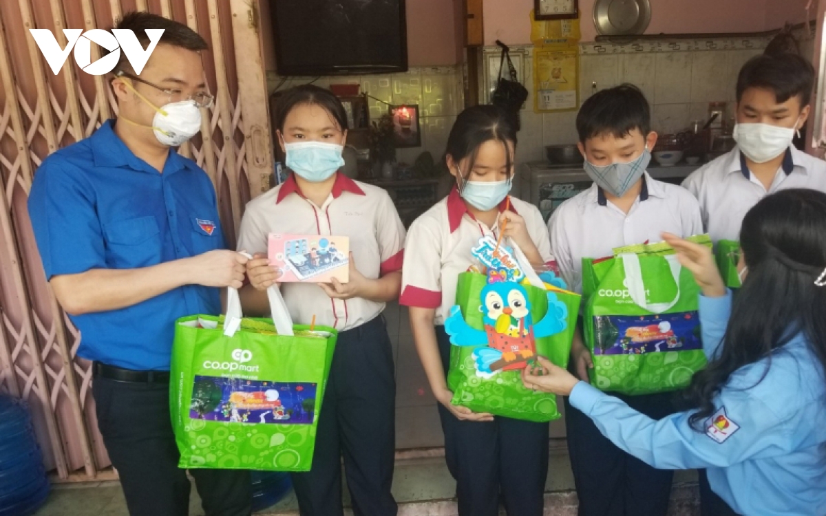 กองเยาวชนคอมมิวนิสต์โฮจิมินห์และสภากองยุวชนนครโฮจิมินมอบสิ่งของที่จำเป็นและทุนการศึกษาเพื่อช่วยเหลือเด็กที่มารดาเสียชีวิตจากโควิด-19 |
