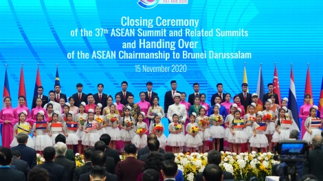 (VOVWORLD) -การประชุมผู้นำอาเซียนครั้งที่ 37และการประชุมที่เกี่ยวข้องได้เสร็จสิ้นลงภายหลังดำเนินการประชุมเป็นเวลา3วัน โดยนายกรัฐมนตรีเหงวียนซวนฟุกได้ยืนยันว่า ผลสำเร็จของการประชุมจะสร้างพลังขับเคลื่อนใหม่ให้อาเซียนบนเส้นทางพัฒนาต่อไป โอกาสนี้ เวียดนามได้มอบตำแหน่งประธานอาเซียน 2021ให้แก่ประเทศบรูไน