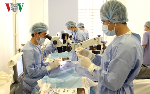 เวลา 8.00 น. แพทย์ได้เริ่มทำการผ่าตัดตาในห้องผ่าตัด 2 ห้อง ส่วนห้องพักฟื้นก็พร้อมรับผู้ป่วยหลังผ่าตัด ซึ่งแพทย์ทุกคนต้องเตรียมพร้อมตั้งแต่ช่วงเช้าตรู่ การผ่าตัดใช้เวลา 5-7 นาที ผู้ป่วยซึ่งใส่ชุดของโรงพยาบาลจะนั่งรออยู่ข้างนอก ส่วนบรรยากาศภายในห้องผ่าตัดก็ดำเนินไปอย่างรวดเร็ว บางทีก็ได้ยินแพทย์เวียดนามถามผู้ป่วยผ่านล่าม