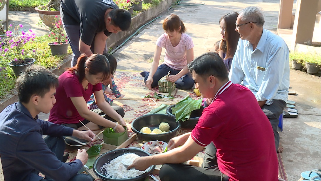 นางสาว นิภาวัน บุดดี อายุ 24 ปี หลานของคุณเตวี๊ยนที่กำลังศึกษาในมหาวิทยาลัยเทคโนโลยีสารสนเทศนครท้ายเงวียน ซึ่งได้กลับบ้านเพื่อฉลองตรุษเต๊ตกับครอบครัวเผยว่า “นี่เป็นงานฉลองสำคัญที่สุดของคนเวียดนาม ดังนั้น ฉันจึงกลับบ้านเพื่อฉลองตรุษเต๊ตกับครอบครัว ในช่วงนี้ แม้จะอยู่อาศัยหรือทำงานที่ไหน แต่ทุกคนก็พยายามเดินทางกลับบ้านเพื่อฉลองตรุษเต๊ตกับครอบครัว ส่วนอาหารเวียดนามในช่วงตรุษเต๊ตที่ฉันชอบมากที่สุดคือแบ๊งจึงและแนมร้านหรือปอเปี๊ยะทอดและในวันปีใหม่นี้ ฉันก็ได้รับแต๊ะเอียเพื่อจะได้โชคดีตลอดปี”