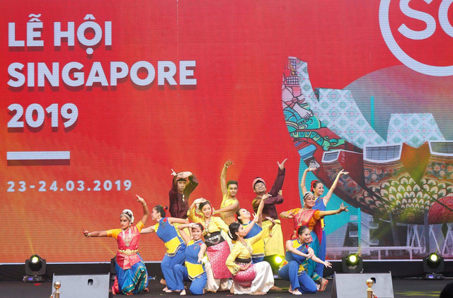 บริเวณลานอนุสาวรีย์กษัตริย์ ลี้ท้ายโต๋ใกล้ถนนคนเดินในใจกลางกรุงฮานอยมีความคึกคักมากขึ้นด้วยสีสันที่หลากหลายจากโปสเตอร์รูปเมอไลอ้อนและตึก Marina Bay Sands ที่มีชื่อเสียงของประเทศสิงคโปร์ ข้างบนมีข้อความ “เทศกาลสิงคโปร์ – Passion Made Possible” ซึ่งเป็นเครื่องหมายการค้าเพื่อประชาสัมพันธ์สิงคโปร์เพื่อสร้างความเชื่อมโยงและช่วยให้สิงค์โปร์กลายเป็นจุดหมายปลายทางในด้านการท่องเที่ยวและวัฒนธรรม บนเวทีกลางแจ้ง คณะนักฟ้อนรำชั้นนำของสิงคโปร์ที่ใส่สวมชุดพื้นเมืองของประเทศต่างๆ เช่น จีน มาเลเซียและอินเดียกำลังแสดงการฟ้อนรำพื้นเมืองที่อ่อนช้อยสวยงามตามจังหวะเพลง ซึ่งดึงดูดความสนใจของผู้ชมเป็นอย่างมาก คุณ ตุ่ง ผู้ชมจากกรุงฮานอยแสดงความคิดเห็นว่า “เยี่ยมมากครับ เราสามารถเห็นได้ความหลากหลายด้านชาติพันธุ์ของสิงคโปร์ผ่านการแสดงฟ้อนรำ ดนตรีและชุดแต่งกาย ซึ่งสื่อถึงประเทศสิงคโปร์ที่เต็มไปด้วยเอกลักษณ์”