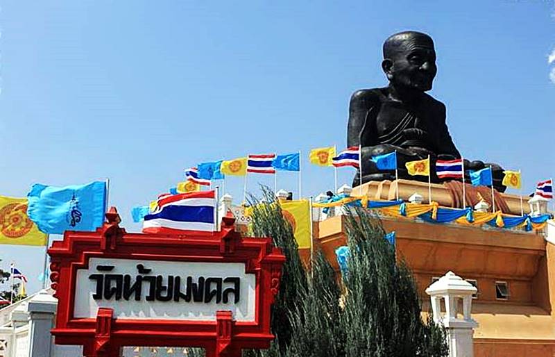 ห่างจากอุทยานราชภักดิ์ประมาณ 30 กิโลเมตรคือวัดห้วยมงคล เป็นที่ประดิษฐานรูปเหมือนหลวงปู่ทวดองค์ใหญ่ที่สุดในโลก แต่เดิมมีชื่อว่า “วัดห้วยคต” ตั้งอยู่ในชุมชนบ้านห้วยคต ตำบลทับใต้ อำเภอหัวหิน ต่อมาพระบาทสมเด็จพระเจ้าอยู่หัวทรงพระราชทานนามใหม่เป็นห้วยมงคล ซึ่งเป็นวัดที่ศักดิ์สิทธิ์ โดยมีชาวไทยมากราบไหว้หลวงปู่ทวดเพื่อขอพรและปิดทองตลอดทั้งวัน “ดิฉันมาปิดทองและขอพรตามประเพณีไทย นี่คือพระพุทธรูปของหลวงปู่ทวดที่มีชื่อเสียงในภาคใต้ของไทย โดยท่านมีคาถาที่สามารถเปลี่ยนน้ำทะเลให้เป็นน้ำจืดเพื่อช่วยชีวิตคนและดับไฟที่กำลังไหม้ เป็นต้น ดังนั้น ดิฉันมาที่นี่เพื่อชมรูปหล่อของท่านและขอพรให้ครอบครัวมีความปลอดภัย”