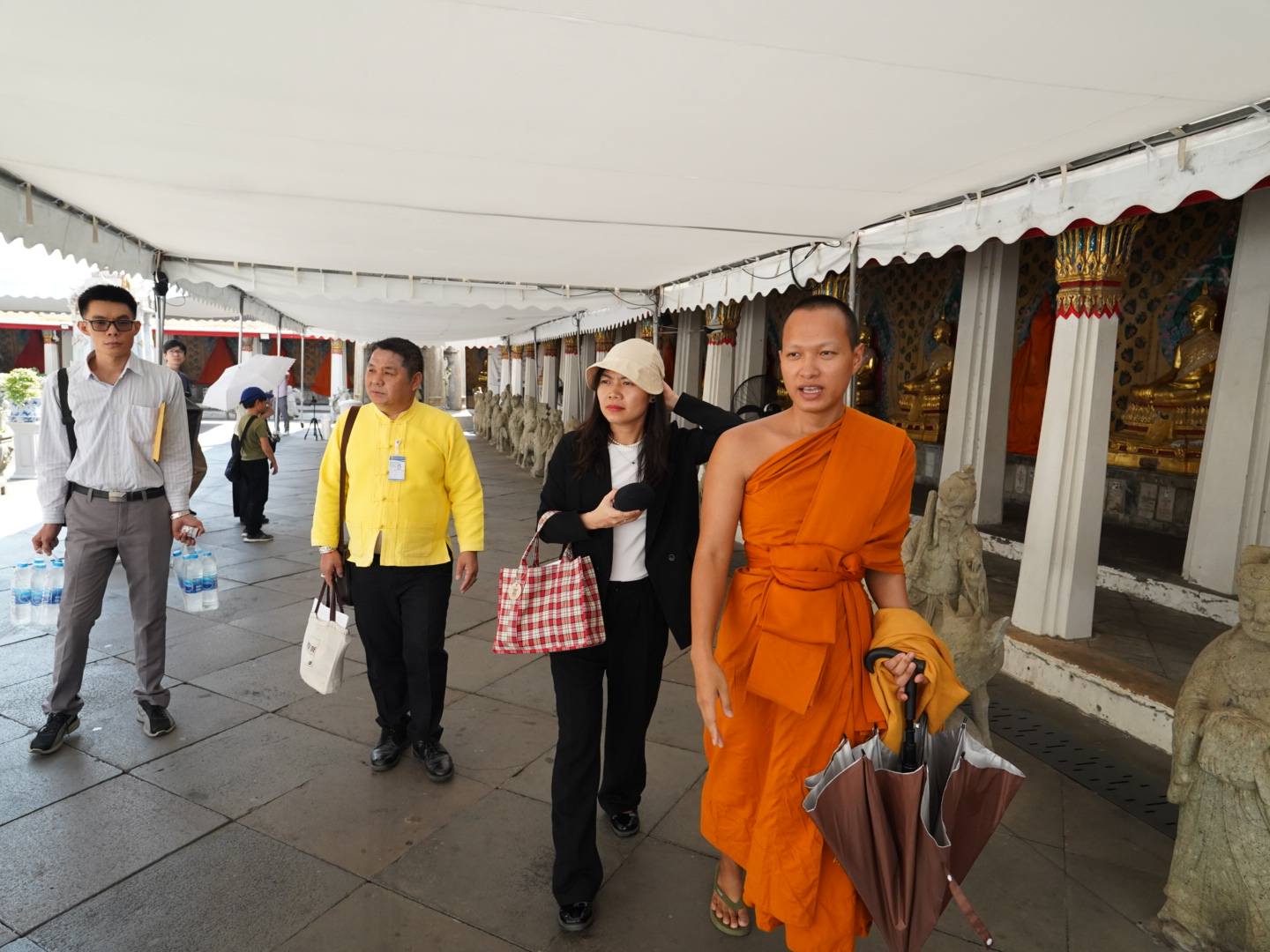เจ้าคุณชุมพร เลขานุการและผู้ช่วยเจ้าอาวาสวัดอรุณราชวรารามพาคณะผู้สื่อข่าววีโอวีเที่ยวชมวัดอรุณราชวราราม |