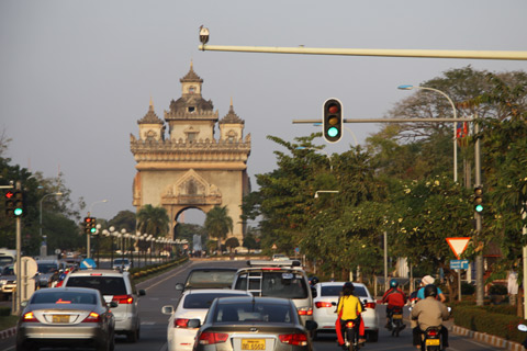 รถวิ่งมาถึงกรุงเวียงจันทน์ตอนเวลาบ่าย 3 โมงครึ่ง สำหรับคุณเฟือง สิ่งแรกที่สร้างความประทับใจเมื่อก้าวลงจากรถก็คือชาวเวียงจันทน์“ผู้หญิงลาวทุกคนทั้งผู้สูงอายุและเด็กต่างใส่ผ้าชิ้นที่มีสีสันสดใสและเรียบง่าย นอกจากนั้นที่กรุงเวียงจันทน์ ดิฉันไม่ได้ยินเสียงแตรรถ รถรอเข้าสถานีขนส่งเป็นระเบียบ ไม่มีการแซงกัน”