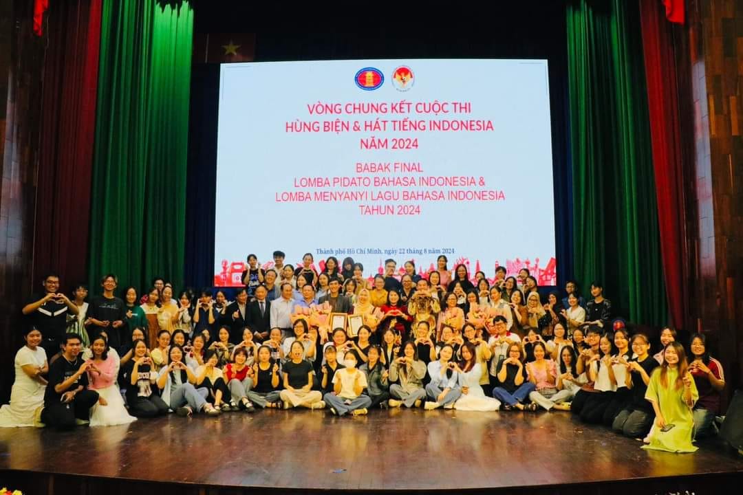 “การประกวดสุนทรพจน์และร้องเพลงภาษาอินโดนีเซีย” ได้มีขึ้นเนื่องในโอกาสฉลองครบรอบ 79 ปี วันชาติสาธารณรัฐอินโดนีเซีย รวมถึงการที่ภาษาอินโดนีเซียได้รับการรับรองจากองค์กร UNESCO ในฐานะภาษาสากลขององค์กรนี้อย่างเป็นทางการเมื่อปลายปี 2023 และครบรอบ 31 ปีการก่อตั้งภาควิชาอินโดนีเซียศึกษาของมหาวิทยาลัยสังคมศาสตร์และมนุษยศาสตร์ มหาวิทยาลัยแห่งชาตินครโฮจิมินห์ นาย Agustaviano Sofjan กงสุลใหญ่อินโดนีเซียประจำนครโฮจิมินห์ กล่าวว่า
