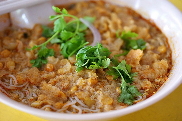 ![]() ขนมจีนปลาโมฮิงกาทานคู่กับผักชี
