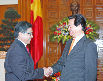 | นายกรัฐมนตรีเวียดนามNguyễn Tấn DũngและเอกอัครราชทูตอินโดนีเซียMayerfas (Photo:Internet) |