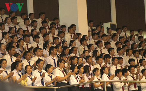 ![]() นักศึกษาลาวเช้าร่วมการพูดคุยของท่านเลขาธิการใหญ่พรรคคอมมิวนิสต์เวียดนาม
