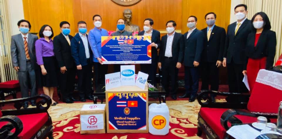 หลังจากเสร็จสิ้นการปฏิบัติการเว้นระยะห่างทางสังคมตามมติที่ 16ของนายกรัฐมนตรี เมื่อวันที่ 24เมษายนที่ผ่านมา Thai Business Club ในภาคเหนือ และบริษัทใหญ่ๆ เช่น บริษัทหุ้นส่วน Prime group สังกัดเครือบริษัท SCG บริษัทไทยซัมมิทเวียดนาม เครือบริษัท Phú Thái บริษัท Mega Lifesciences Vietnamและบริษัทหุ้นส่วน Siam-vina golf เป็นต้น ได้มอบเงินและสิ่งของต่างๆให้แก่สถานทูตไทย ณ กรุงฮานอย โดยผู้ที่มาร่วมกิจกรรมจะถูกวัดอุณหภูมิร่างกาย สวมหน้ากากอนามัยและมีการเว้นระยะห่างกันอย่างน้อย 2เมตร นาย ชัยพร สุปัญญา ผู้อำนวยการฝ่ายทรัพยากรบุคคลของบริษัทหุ้นส่วน Prime group สังกัดเครือบริษัท SCG และนางสาว พยอม นาหอคำ ผู้ช่วยประธานเจ้าหน้าที่บริหารบริษัท Chance and challenge หรือ CAC ได้เผยว่า นอกเหนือจากกิจกรรมดังกล่าว ทางบริษัท Prime และCAC ยังมีกิจกรรมต่างๆในการสนับสนุนชุมชนป้องกันและรับมือการแพร่ระบาด