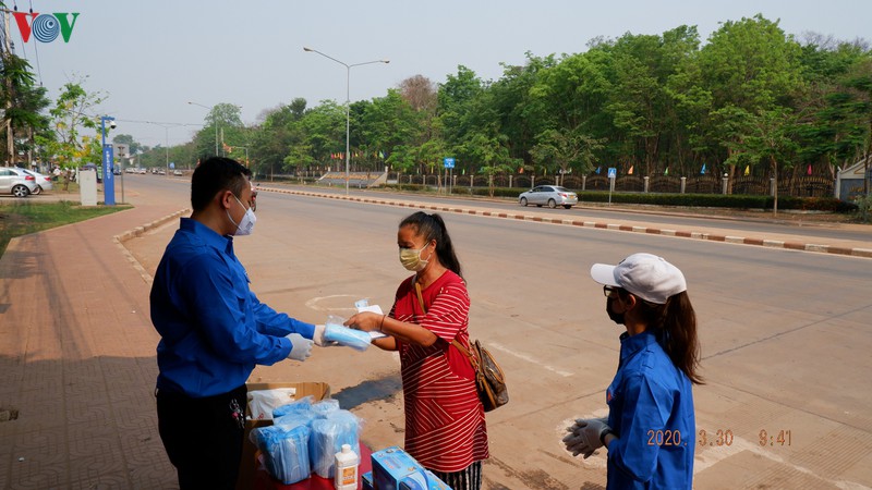 ไม่เพียงแต่ปฏิบัติตามข้อกำหนดต่างๆเกี่ยวกับการป้องกันและควบคุมการแพร่ระบาดของกระทรวงสาธารณสุขลาว แต่นักศึกษาเวียดนามยังทำการประชาสัมพันธ์เกี่ยวกับการป้องกันและควบคุมโรคโควิด -19 บนอินเตอร์เน็ต โดยเปิดรับบริจาคหน้ากากอนามัยเพื่อนำไปแจกฟรี ดั่งเช่น คุณ ดิงกวางวิงห์และเพื่อนๆที่สามารถแจกหน้ากากอนามัยในเช้าวันแรกได้ประมาณ 1,500 อันที่หน้าประตูวัดเฝิดติ๊ก ถนนหนองบ่อน เพื่อมีส่วนร่วมควบคุมการแพร่ระบาด คุณ วิงห์เผยว่า “วันนี้แค่เป็นวันแรก วันต่อๆไปเราจะรณรงค์ให้ทุกคนร่วมบริจากหน้ากากอนามัยเพื่อมีส่วนร่วมต่อต้านโรคโควิด – 19 แม้เป็นเช้าวันแรกแต่เราแจกได้ 1,500 อันแล้ว ใครอยากได้เราก็แจกให้”