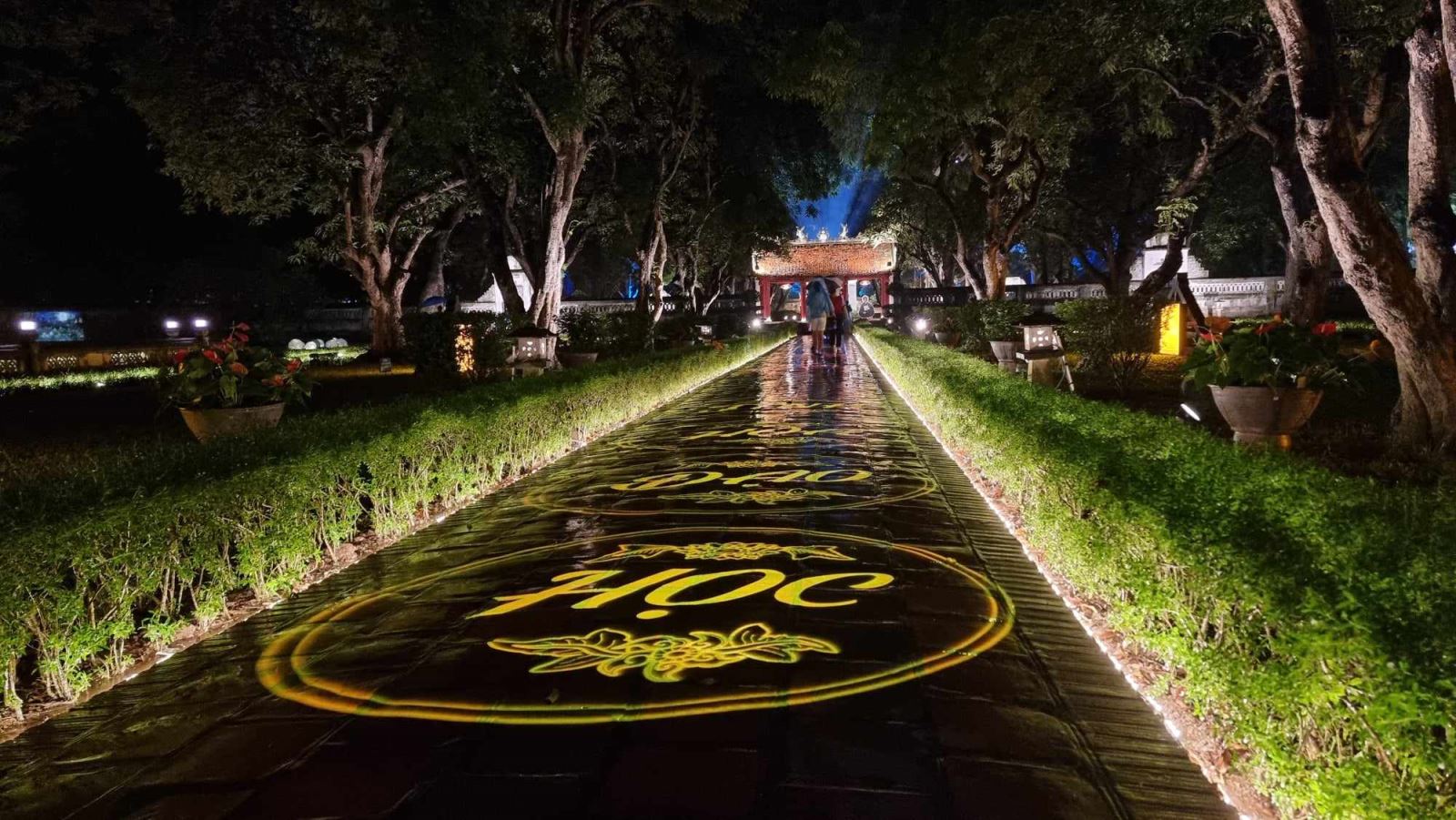 ถึงแม้เคยมาเยือนเวียดนามหลายครั้งและเยือนวันเมี้ยวก๊วกตื๋อย้ามในตอนกลางวันแล้ว แต่นี่คือครั้งแรกที่นาย อำนาจ จงยศยิ่ง จากจังหวัดเชียงใหม่ ประเทศไทยมีโอกาสเข้าร่วมทัวร์กลางคืน เมื่อเดินเข้าประตูหลัก (Van Mieu Mon) นาย อำนาจ จงยศยิ่ง มีความแปลกใจกับความงามที่ทันสมัยของวันเมี้ยวก๊วกตื๋อย้าม แต่ยังคงมีความเงียบสงบด้วยแสงสีเสียงต้อนรับนักท่องเที่ยว สองข้างทางสายหลักเข้าวันเมี้ยวก๊วกตื๋อย้ามตั้งแต่ประตูวันเมี๊ยวไปจนถึงประตู ด่ายจุง มีการตกแต่งด้วยคำว่า “Tinh Hoa Dao Hoc” หรือ “ความดีเลิศแห่งการใฝ่การศึกษา” อันเป็นการสื่อถึงข้อความว่า นี่คือถนนสายหลักที่นำไปสู่ความดีเลิศแห่งการใฝ่การศึกษาของชาวเวียดนาม นอกจากนั้นยัง มีการประดับผลงานประติมากรรมนูนต่ำ 4 ชิ้นในหัวข้อ“Tứ linh huấn tử” ที่ชวนให้นึกถึงภาพคุณพ่อกำลังสอนลูก ๆ ในชายคาที่สงบอบอุ่น