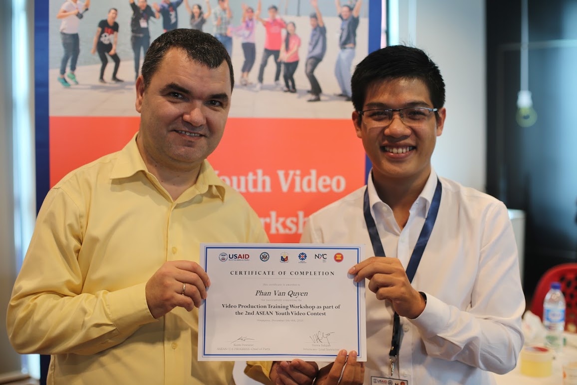 (VOVworld) – รางวัลที่ 1 ในการประกวด “นักถ่ายทำภาพยนตร์รุ่นใหม่บรรดาประเทศในเอเชียตะวันออกเฉียงใต้” ครั้งที่ 2 ภายใต้หัวข้อ “กิจกรรมจิตอาสาในประชาคมอาเซียน” เป็นของนาย ฟานวันเกวี่ยน อายุ 22 ปี ที่กำลังเรียนสาขาวิชาออกแบบกราฟิกของมหาวิทยาลัย FPT Arena นครโฮจิมินห์ หลังจากเอาชนะคู่แข่ง 9 คนจาก 9 ประเทศสมาชิกอาเซียน โดยภาพยนตร์ส่งเข้าร่วมการประกวดมีความยาว 2 นาที 30 วินาที มีเนื้อหาเกี่ยวกับกิจกรรมจิตอาสาของคนรุ่นใหม่เพื่อนำความรักใคร่มาให้แก่ชนกลุ่มน้อยในเขตที่ราบสูงไตเงวียน ประเทศเวียดนาม