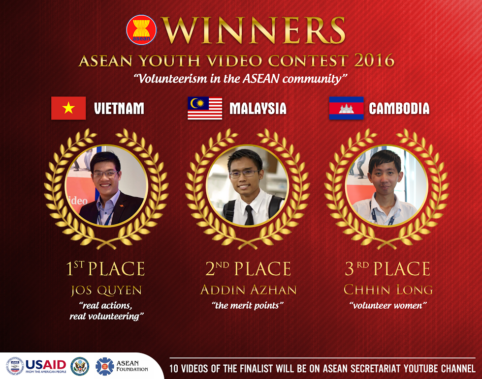 การประกวด “ASEAN Youth Video Contest” จัดโดยกองทุนอาเซียน สำนักงานพัฒนาของสหรัฐ กลุ่มเฉพาะกิจของสหรัฐประจำอาเซียน การประชุมระดับสูงเกี่ยวกับเยาวชนและสภาเยาวชนแห่งชาติสิงคโปร์ เพื่อส่งเสริมให้เยาวชนมีความคล่องตัวมากขึ้นในประชาคมอาเซียน ตลอดจนให้ความสำคัญต่อการนำของผู้นำรุ่นใหม่ผ่านการใช้การสื่อสารมัลติมิเดีย โดยเฉพาะภาพยนตร์ การประกวดครั้งแรกปี 2015 ได้มีขึ้น ณ ประเทศสิงคโปร์และการประกวดครั้งที่ 3 ปี 2017 ที่จะมีขึ้น ณ ประเทศฟิลิปปินส์.