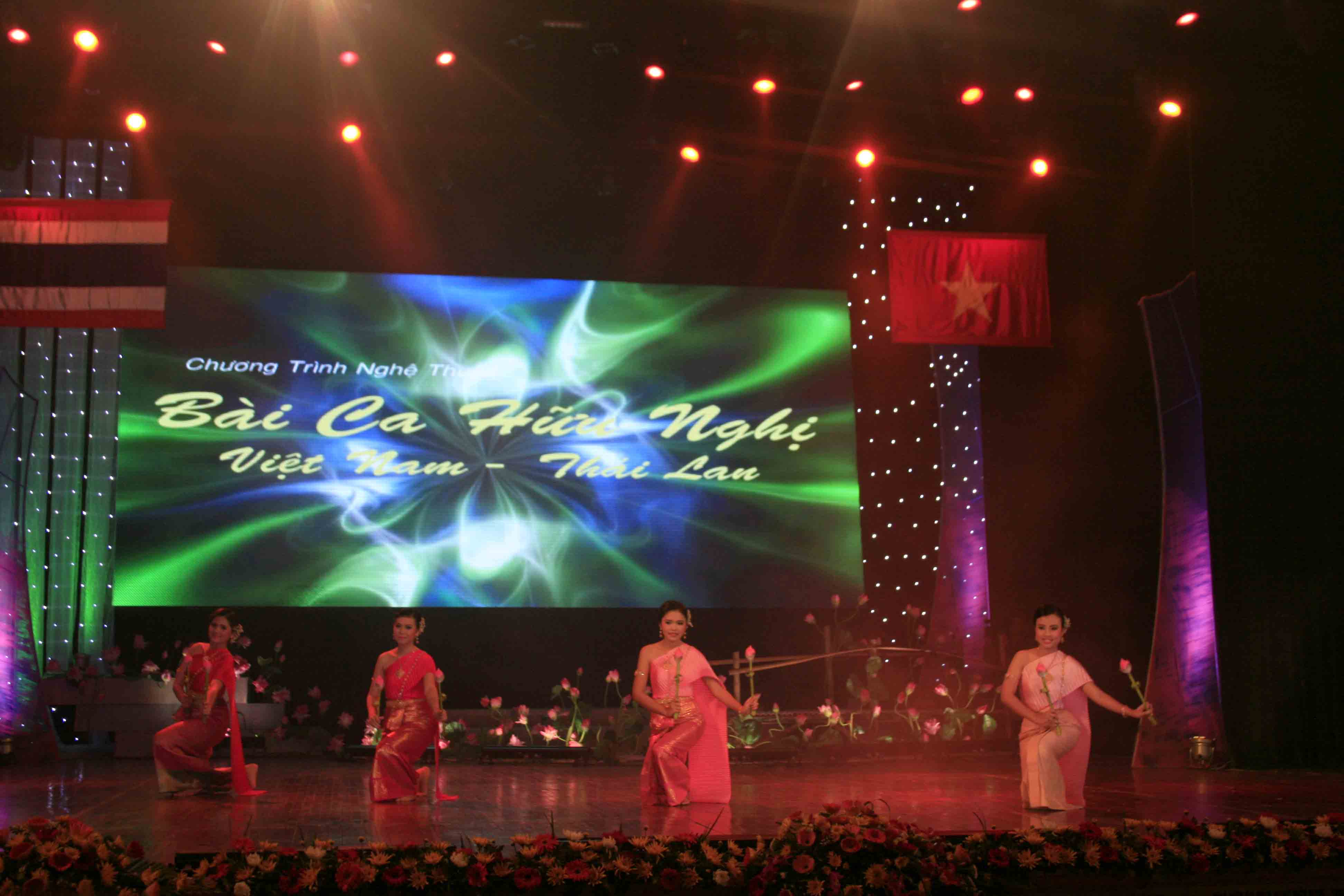 การแสดงฟ้อนรำ“สีสันแห่งวสันต์ฤดู”จากบรรดาศิลปินของโรงละครดนตรี นาฏศิลป์เวียดนามเป็นการแสดงเปิดม่าน“เสียงเพลงแห่งมิตรภาพเวียดนามไทย” โดยนักแสดงร่ายรำอย่างอ่อนช้อยสวยงาม ช่วยให้ผู้ชมรู้สึกถึงกลิ่นอายที่อบอุ่นของวสันต์ฤดูที่ต้นไม้ใบหญ้าพากันผลิดอก เบ่งบาน ท่ามกลางบรรยากาศอันชื่นมื่นของประเทศเมื่อวสันต์ฤดูเวียนมา นอกจากนี้ เพลงที่มีชื่อเสียงต่างๆ เช่น“ฮานอย ดวงใจสีชมพู”และ“ฮานอยแห่งความศักดิ์สิทธิ์และอารยธรรม”ที่ขับร้องโดยนักร้องเวียดนามก็ช่วยให้ผู้ชม โดยเฉพาะ ผู้ชมชาวต่างชาติเข้าใจเกี่ยวกับกรุงฮานอย ที่มีอารยธรรมนับพันปี
