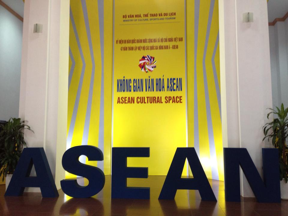 หอสมุดแห่งชาติถูกใช้เป็นสถานที่จัดแสดงเอกสารกว่า๑พันชิ้นของนิทรรศการครั้งนี้ หน้าประตูหลักมีป้ายขนาดใหญ่ที่ระบุข้อมูลเกี่ยวกับ๑๐ประเทศสมาชิกอาเซียน เช่น พื้นที่ ประชากร ชีวิตวัฒนธรรมหรือเศรษฐกิจพร้อมภาพทัศนียภาพที่สวยงามและเทศกาลวัฒนธรรมที่เป็นเอกลักษณ์ของแต่ละประเทศ เช่น ประเทศไทยมีภาพวัดไตรมิตร วัดอรุณ และเทศกาลสงกรานต์ ส่วนประเทศกัมพูชามีภาพประสาทนครวัด นครธม และประเทศเวียดนามมีภาพวัดเสาเดียว อ่าวฮาลอง การร้องเพลงทำนองกวานเหาะบั๊กนิงซึ่งช่วยให้ผู้ชมมีการมองโดยสังเขปเกี่ยวกับประเทศสมาชิกอาเซียนต่างๆ ด้านขวาล็อบบี้มีตู้จัดแสดงเอกสาร ประกอบด้วยหนังสือและหนังสือพิมพ์เกี่ยวกับวัฒนธรรม เศรษฐกิจและความร่วมมือที่โดดเด่นของบรรดาประเทศสมาชิกอาเซียนเป็นภาษาประเทศต่างๆ เช่น World Food Thailand หรือโลกแห่งอาหารไทย Todays Singapoหรือสิงคโปร์วันนี้ และประวัติศาสตร์กัมพูชา เป็นต้น นางฟานถิกิมยุงผู้อำนวยการหอสมุดแห่งชาติกล่าวว่า“เอกสารที่จัดแสดงในงานนิทรรศการครั้งนี้มีความหลากหลายโดยมาจากหอสมุดแห่งชาติของเวียดนามและประเทศสมาชิกอาเซียนอื่นๆ นอกจากนี้ สถานทูตประเทศสมาชิกอาเซียนประจำกรุงฮานอยก็มอบหรือให้ยืมสิ่งของวัตถุเพื่อมาจัดแสดงในงาน”