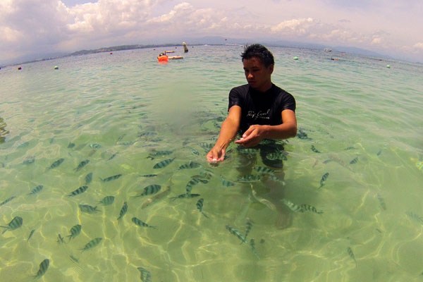 | ทะเลที่นี่มีปลาเยอะมาก นักท่องเที่ยวสามารถว่ายน้ำพร้อมกับปลาได้ |