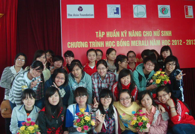 | ฝึกทักษะให้แก่นักศึกษาหญิงที่เข้าร่วมโครงการทุนการศึกษาMeraliปีการศึกฏษา๒๐๑๒-๒๐๑๓ ( Photo:www.vnu.edu.vn ) |