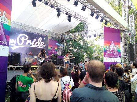 (VOVworld) – ถึงแม้ในกรุงฮานอยจะมีฝนตก แต่ก็ยังมีเยาวชนมากมาย โดยเฉพาะแฟนเพลงได้มายังสโมสรสหรัฐในเขต หายบ่าจึงเพื่อเข้าร่วมงานเทศกาลดนตรีอาเซียนไพรด์ 2015 ซึ่งจัดขึ้นกลางแจ้งตั้งแต่เวลา 13.00 น ของวันที่ 20 มิถุนายนที่ผ่านมาเพื่อให้เยาวชนสามารถสัมผัสกับเพลงที่มีจังหวะคึกคักขับร้องโดยนักร้องรุ่นใหม่จากหลายประเทศในภูมิภาค พร้อมทั้งมีโอกาสพบปะสังสรรค์และเสนอข้อคิดดีๆให้แก่ชุมชน