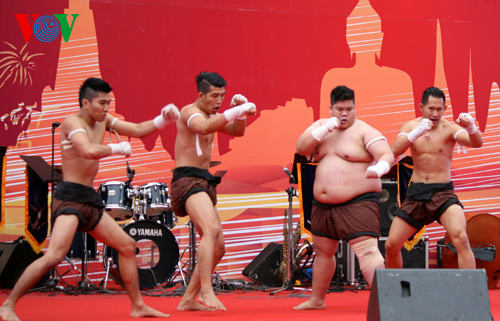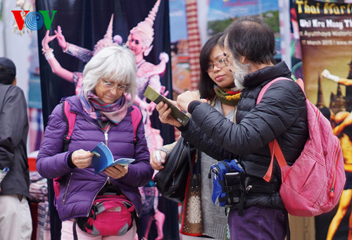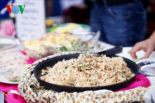 นอกจากการได้รับชมการแสดงรายการศิลปะที่เป็นเอกลักษณ์ของไทยแล้ว ผู้เข้าชมงานยังได้ลิ้มลองอาหารพื้นเมืองที่อร่อยจากทุกสารทิศของไทยโดยในจำนวน 22 บูธในงาน มีกว่าครึ่งหนึ่งคือบูธที่แนะนำเกี่ยวกับอาหารของไทยโดยแม่ครัวชาวไทยเป็นผู้ปรุงเอง รวมทั้งบูธที่แนะนำขนมพื้นเมืองของไทยจากจังหวัด พระนครศรีอยุธยา นางสาว อรุณ รัตน์ดำเนินงาม แม่ครัวจากร้านอาหาร Thai Restaurant & Lounge ได้เผยว่า “วันนี้ พวกเรามีก๋วยเตี๋ยวลุยสวน มีกุ้ง มีไก่ มีน้ำจิ้มแบบเผ็ด ถ้าคนไม่ทานเผ็ดก็มีแบบไม่เผ็ดแล้วก็มีขนมจีน น้ำยา น้ำพริกซึ่งเป็นอาหารแบบโบราณของไทยแล้วก็ต้มมัดซึ่งเป็นอาหารของไทยทั้งหมดซึ่งค่อนข้างจะทำยากและละเอียดมาก ดิฉันรู้สึกว่า คนเวียดนามวันนี้ทานอาหารไทยเยอะมากแล้วก็เริ่มทานเผ็ดมาก”