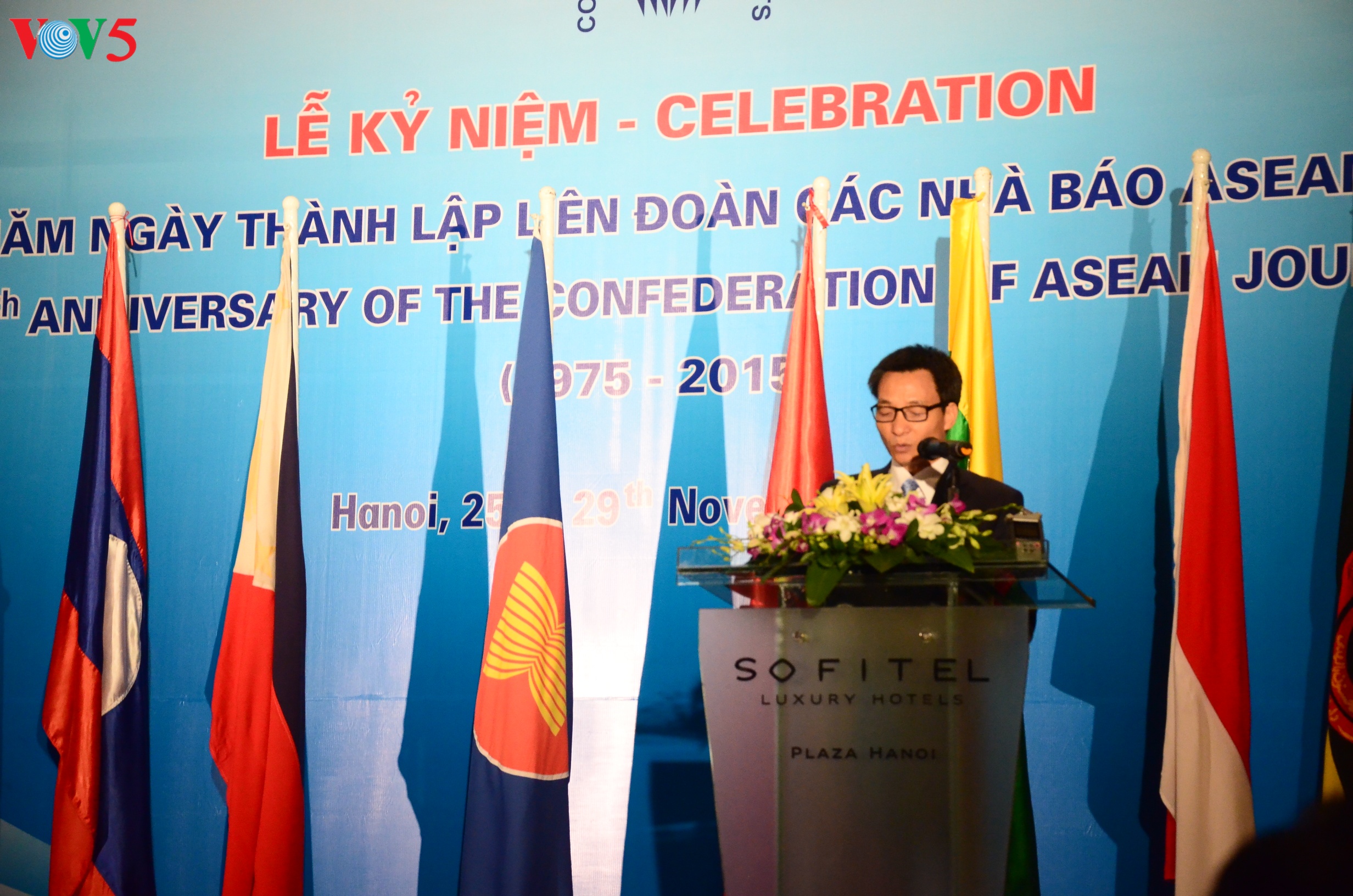 พร้อมกับการจัดตั้งและพัฒนาของอาเซียน ในตลอด 40 ปีที่ผ่านมา สมาพันธ์นักหนังสือพิมพ์แห่งอาเซียนหรือซีเอเจซึ่งเป็นองค์กรวิชาชีพของสื่อมวลชนในภูมิภาคได้มีความผูกพันและมีกิจกรรมที่เข้มแข็งและมีส่วนร่วมต่อการพัฒนาของภูมิภาค พิธีฉลองครบรอบ 40 ปีวันก่อตั้งซีเอเจและการประชุมใหญ่ครั้งที่ 18 ซีเอเจมีความหมายสำคัญพิเศษเพราะมีขึ้นในช่วงเตรียมจัดตั้งประชาคมอาเซียนอย่างเป็นทางการในปลายปี 2015 ในการกล่าวปราศรัยในพิธี นาย หวูดึ๊กดาม รองนายกรัฐมนตรีได้แสดงความเห็นว่า องค์การสื่อสารมวลชนในภูมิภาคต้องเป็นผู้เดินหน้าด้วยความรับผิดชอบสูงคือแนะแนวประชามติให้มุ่งถึงคุณค่าที่ดีงามเพื่อมีส่วนร่วมต่อการพัฒนาและความเจริญรุ่งเรืองของประชาคมอาเซียนและโลก“สถานการณ์ในภูมิภาคและโลกที่มีการผันผวนอย่างซับซ้อนได้สร้างความท้าทายต่อสันติภาพและการพัฒนา โดยเฉพาะการรักษาความมั่นคง ความปลอดภัยและการเดินเรือทางทะเล เพื่อรักษาสันติภาพ เสถียรภาพและสร้างบรรยากาศที่สะดวกให้แก่การพัฒนาสื่อมวลชนอาเซียนต้องมีบทบาทและความรับผิดชอบในการผลักดันความเข้าใจระหว่างประชาชาติ ขยายความร่วมมือระหว่างประเทศต่างๆ ตลอดจนให้ความสำคัญต่อความยุติธรรมในการแก้ไขการพิพาทและความขัดแย้งผ่านมาตรการที่สันติ ปฏิบัติตามกฎหมายสากล เวียดนามยังคงตระหนักถึงบทบาทการเป็นสมาชิกที่กระตือรือร้นและมีความรับผิดชอบในทุกกิจกรรมของอาเซียน โดยเฉพาะการปฏิบัติมาตรการสร้างสรรค์ประชาคมเศรษฐกิจอาเซียน”