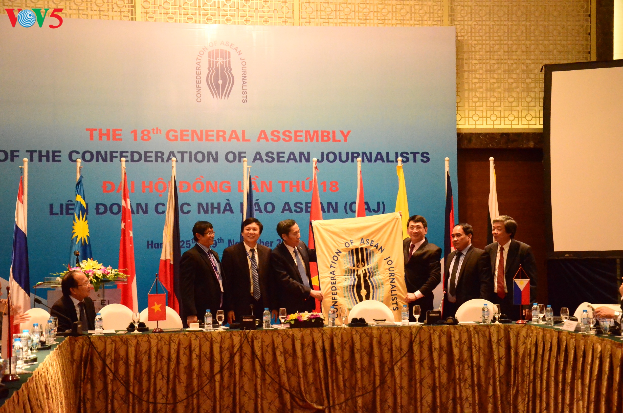 ที่ประชุมได้ส่งต่อตำแหน่งประธานซีเอเจวาระปี 2015-2017 ให้แก่นักข่าว ถ่วนหุย ประธานสมาพันธ์นักหนังสือพิมพ์แห่งเวียดนาม