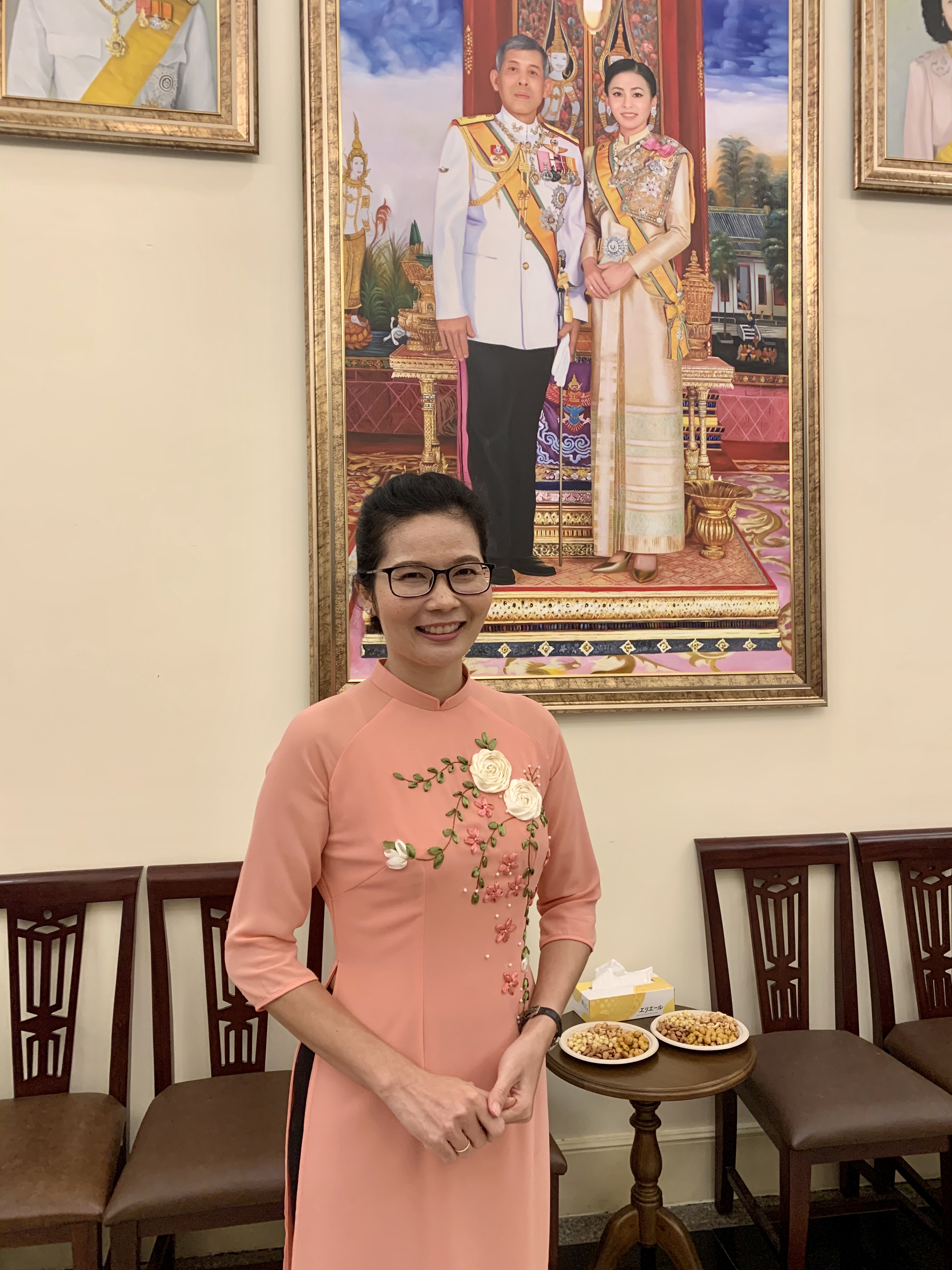 “จริงแล้วๆดิฉันเพิ่งรู้ตัวว่าเป็นเหวียดเกี่ยว (ชาวเวียดนามโพ้นทะเล) เพราะว่าครอบครัวไม่เคยเล่าเรื่องเกี่ยวกับเหวียดเกี่ยวหรือต้นตระกูลว่ามาจากไหน แต่ดิฉันชอบเรียนภาษาเวียดนามตั้งแต่สมัยยังเป็นนักศึกษาปีที่ 3 ที่มหาวิทยาลัยขอนแก่น หลังจากจบปริญญาตรีและทำงานไปได้ 1 ปีก็รู้สึกว่าอยากเรียนภาษาต่างประเทศเพิ่มอีกภาษาหนึ่งแต่ไม่ใช่ภาษาอังกฤษ ในตอนนั้น จังหวัดนครพนมซึ่งเป็นบ้านเกิดของดิฉันและมหาวิทยาลัยวิงห์เพิ่งมีความร่วมมือเพื่อแลกเปลี่ยนนักศึกษากัน ดิฉันจึงได้สมัครไปเรียนเป็นเวลา 1 ปี หลังจากเรียนจบก็ได้กลับมาเรียนต่อปริญญาโทที่มหาวิทยาลัยมหาสารคาม หลังจากจบปริญญาโท ดิฉันก็ได้เริ่มสอนภาษาเวียดนามอย่างเป็นทางการที่มหาวิทยาลัยสองสามแห่งและปัจจุบันกำลังสอนที่มหาวิทยาลัยรามคำแหง”