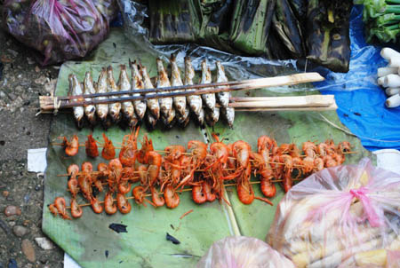 ตลาดนาแหม่วเริ่มคึกคักไปด้วยผู้คนที่สวมใส่เครื่องแต่งกายของชนเผ่าต่างๆ เช่น ไทย ม้ง กิงของเวียดนาม รวมทั้งชาวลาวที่เดินทางข้ามจุดผ่านแดนนานาชาตินาแหม่วและชาวต่างชาติมาตั้งแต่เช้าตรู่ สินค้าในตลาดส่วนใหญ่เป็นผลิตภัณฑ์ท้องถิ่นที่พี่น้องประชาชนในบริเวณชายแดนเวียดนาม– ลาวนำมาค้าขายและแลกเปลี่ยน สินค้าของชาวเวียดนามได้แก่ เครื่องใช้ไม้สอยในครัวเรือน เสื้อผ้าสำเร็จรูป ปลาทะเล และข้าวสารเหนียว ส่วนผลิตภัณฑ์ที่ชาวลาวนำมาขาย อาทิเช่น หนูป่าตากแห้ง ปลาย่างและสินค้าศิลปะหัตถกรรม เป็นต้น คุณสมพร ที่หมู่บ้านพูนการ อำเภอเวียงไซ เผยว่า เธอตื่นตั้งแต่ตี๓ครึ่ง เดินเท้าด้วยระยะทางกว่า๒๐กิโลเมตรเพื่อให้ทันเวลาเปิดตลาด