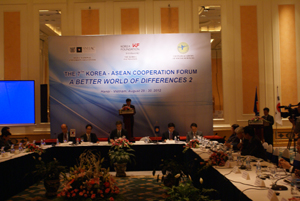 ในฟอรั่มความร่วมมือสาธารณรัฐเกาหลี อาเซียน ครั้งที่๗ ในหัวข้อ“โลกที่ดีงามในความหลากหลาย” บรรดาวิทยากร นักการทูต เจ้าหน้าที่ระดับสูงของสาธารณรัฐเกาหลีและอาเซียนต่างเห็นว่า นี่เป็นกิจกรรมสำคัญในกระบวนการส่งเสริมความสัมพันธ์ระหว่างสองฝ่ายให้พัฒนายิ่งขึ้นพร้อมทั้งส่งสาส์นแสดงความไว้เนื้อเชื่อใจและความเข้าใจกันระหว่างสองฝ่าย ดร.Nguyễn Huy Hoàng รองหัวหน้าสถาบันเอเชียตะวันออกเฉียงใต้กล่าวว่า“ในฟอรั่มนี้ ผมได้รับฟังความคิดเห็นของผู้แทนจำนวนมากเกี่ยวกับการผลักดันความสัมพันธ์ทวิภาคีอาเซียนสาธารณรัฐเกาหลีและเห็นว่า ความเข้าใจกันระหว่างประชาชนของทั้งสองฝ่ายเป็นพื้นฐานของความสัมพันธ์และความร่วมมือในทุกด้าน ดังนั้น พวกเราจะพยายามประชาสัมพันธ์วัฒนธรรม ประเทศและคนอาเซียน โดยเฉพาะ เวียดนามให้กับประชาชนสาธารณรัฐเกาหลี พร้อมทั้งอำนวยความสะดวกเพื่อให้สาธารณรัฐเกาหลีผลักดันความสัมพันธ์ทวิภาคีดังกล่าว” เพื่อส่งเสริมความสัมพันธ์ระหว่างสองฝ่ายให้พัฒนาอย่างเข้มแข็ง และยั่งยืนในอนาคต ท่านกิม วองซาง ประธานมูลนิธิโกเรียหรือKorea Foundation ได้เสนอให้ทั้งสองฝ่ายผลักดันการแลกเปลี่ยนวัฒนธรรม การบันเทิง การกีฬา การศึกษา ฝึกอบรม การจัดสรรทุนการศึกษาให้แก่นักศึกษาของทั้งสองฝ่าย จัดงานแสดงสินค้าเพื่อประชาสัมพันธ์การท่องเที่ยว และจัดตั้งกองทุนวัฒนธรรมอาเซียนสาธารณรัฐเกาหลี ส่วนดร.Moh Lee แห่งมหาวิทยาลัยแห่งชาติโซล ได้กล่าวว่า“พวกเราควรขยายการแลกเปลี่ยนวัฒนธรรม จัดนิทรรศการ และประชาสัมพันธ์วัฒนธรรมระหว่างสองฝ่ายให้มากยิ่งขึ้นและควรจัดตั้งสำนักงานประสาน บริหารและควบคุมกิจกรรมเหล่านี้พร้อมทั้งส่งเสริมให้สถานประกอบการเข้าร่วมกิจกรรมแลกเปลี่ยนศิลปะ วัฒนธรรม”