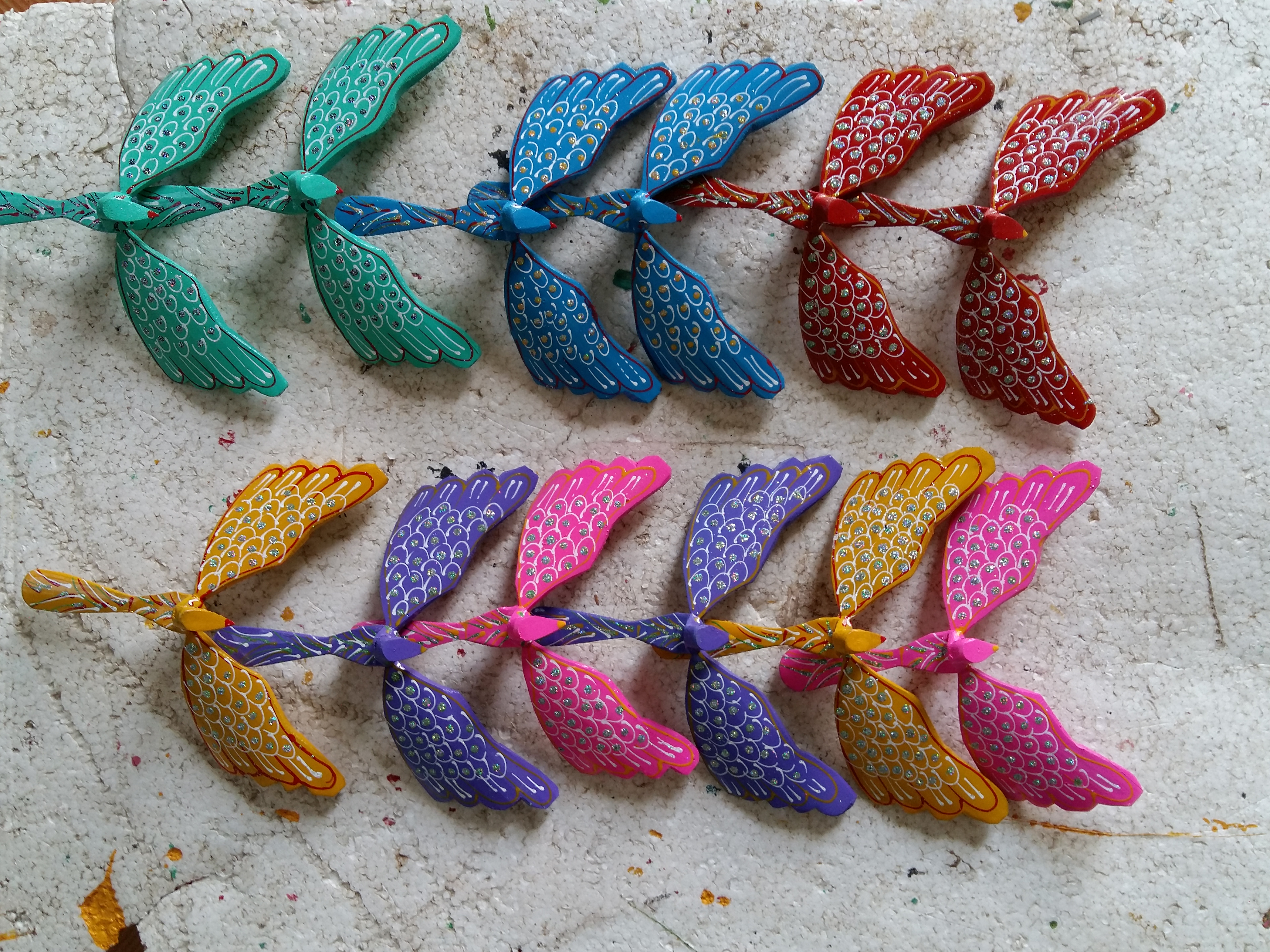 อาชีพการทำแมลงปอไม้ไผ่ได้รับการพัฒนามาเกือบ20ปีแล้ว ในช่วงแรก ชาวบ้านทำแมลงปอไม้ใผ่เพื่อขายให้แก่นักท่องเที่ยวที่มาเยือนวัดเตยเฟือง แมลงปอไม้ไผ่มีความสวยงามและราคาไม่แพงสนนราคาอยู่ที่ประมาณ5พัน-1หมื่นด่งต่อตัว ดังนั้น นักท่องเที่ยวจึงมักซื้อกันหลายตัว จากความต้องการสูงของตลาดทำให้หลายครอบครัวหันมาทำอาชีพผลิตแมลงปอไม้ไผ่จนอาชีพนี้ได้กลายเป็นอาชีพหลักของหมู่บ้าน นาย โด๋วันเลียน หนึ่งในช่างฝีมือดีของหมู่บ้านได้เผยว่า“ขั้นตอนการทำแมลงปอไม้ใผ่คือ นำก้านไม้ไผ่มาตัดแต่งให้มีลักษณะคล้ายกับแมลงปอ ประกอบปีกแมลงปอโดยติดกาวเข้ากับรูที่เราเจาะไว้ด้านข้างแล้วระบายสี จุดที่ยากที่สุดคือการติดปีกเข้ากับลำตัวแมลงปอให้ได้สมดุลย์ ชาวบ้านไม่เพียงแต่ทำแมลงปอเท่านั้น หากยังทำนก ผีเสื้อและเต่าอีกด้วย”