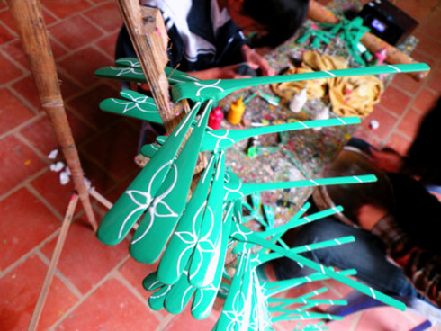 มาเยือนหมู่บ้านแถกสา พวกเราสามารถเห็นภาพของเด็กๆที่ถือแมลงปอไม้ไผ่เล่นกันอย่างสนุกสนาน บูธขายแมลงปอไม้ไผ่ที่ตั้งติดๆกันและช่างฝีมือหลายคนกำลังนั่งทำแมลงปอไม้ไผ่หลากสีสัน สถานที่ผลิตแมลงปอไม้ไผ่ของครอบครัวนาย เหงวียนวันต๊ายมีชื่อเสียงที่สุดในหมู่บ้านแถกสา แมลงปอไม้ใผ่ของครอบครัวนายต๊ายมีคุณภาพดี สวยงามและมีรูปแบบที่หลากหลาย นาย เหงวียนวันต๊ายได้เผยว่า“ผมเป็นคนแรกในหมู่บ้านที่ทำอาชีพนี้ ในช่วงแรก ทำแมลงปอไม้ไผ่ให้เด็กเล่น ต่อมาก็ทำขายที่ตลาด ซึ่งลูกค้าก็มาซื้อหมด อาชีพการทำแมลงปอไม้ใผ่ก็เริ่มพัฒนา แมลงปอไม้ไผ่ที่นี่ได้รับการประเมินว่า สวยกว่าของสถานที่อื่นๆ ”