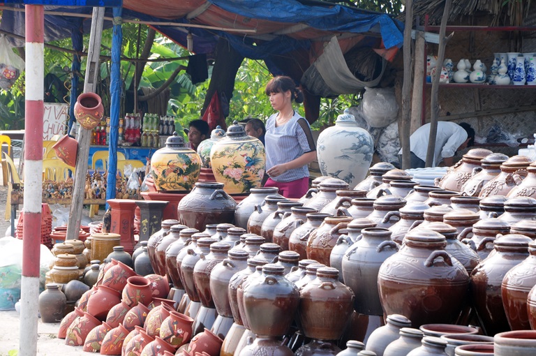 เมื่อเดินทางมาเยือนหมู่บ้านเซรามิก เฮืองแกง นักท่องเที่ยวไม่เพียงแต่เห็นอิฐและดินในสถานที่ทุกแห่งเท่านั้น หากยังเห็นเครื่องเฟอร์นิเจอร์ ภาพไม้และรูปปั้นซึ่งมีความงามแบบชนบทเวียดนามอีกด้วย นักท่องเที่ยวยังสามารถสัมผัสและลองผลิตเครื่องเซรามิก ปัจจุบัน เครื่องเซรามิกเฮืองแกงได้รับการวางขายในสถานที่หลายแห่งทั่วประเทศและส่งออกไปยังต่างประเทศ.