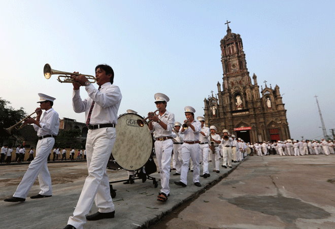 หมู่บ้านฝ่ามฟ้าวตั้งอยู่ที่ตำบล หายมิง อำเภอหายโหว จังหวัดนามดิ่งห์ ซึ่งชาวบ้านส่วนใหญ่นับถือศาสนาคริสต์ สาเหตุที่หมู่บ้านนี้มีชื่อฝ่ามฟ้าวเพราะในหมู่บ้านมีผู้ที่ใช้นามสกุลฝ่ามเป็นจำนวนมาก ซึ่งเป็น 1 ใน 4 ตระกูลที่มีส่วนร่วมบุกเบิกก่อสร้างผืนแผ่นดินหายโห่ว ถ้ามองดูจากด้านบนจะเห็นว่าหมู่บ้านฝ่ามฟ้าวมีรูปร่างเหมือนปืนใหญ่ ส่วนชื่อของหมู่บ้านนั้นก็ไม่มีใครที่มาที่ไป ในช่วงศตวรรษที่ 16 ศาสนาคริสต์นิกายคาทอลิกได้ถูกเผยแผ่มาถึงหมู่บ้านแห่งส่วนโบสถ์ฝ่ามฟ้าวได้รับการก่อสร้างเมื่อปี 1908 ในปีนั้น เกษตรกรในหมู่บ้านได้จัดตั้ง วงแตรตะวันตก ซึ่งในปัจจุบัน วงดนตรีนี้ก็ยังคงทำการแสดงอยู่ ทั้งที่โบสถ์และในโอกาสจัดการชุมนุมต่าง ๆ