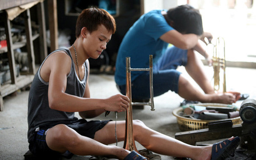 ในตอนแรก มีไม่กี่ครอบครัวในหมู่บ้านที่ประกอบอาชีพทำแตร แต่ในกว่าสิบปีมานี้ การเล่นแตรในจังหวัดนามดิ่งห์ ตลอดจนในจังหวัดใกล้เคียงได้พัฒนาอย่างเข้มแข็ง มีครอบครัวร้อยละ 70 ในหมู่บ้านประกอบอาชีพผลิตแตร จนนำไปสู่การเป็นหมู่บ้านผลิตแตรเพียงแห่งเดียวในจังหวัดนามดิ่งห์ นาย เหงียนวันเกื่อง ช่างศิลป์ที่เกิดในครอบครัวที่มีเกียรติประวัติทำแตรนับสิบปีได้เผยว่า “ผมสืบทอดอาชีพนี้จากบรรพบุรุษ ผมเป็นรุ่นที่ 4 ที่ประกอบอาชีพนี้ แตรที่นำมาซ่อมที่นี่ต่างได้รับการซ่อมแซมอย่างรอบคอบ ดังนั้นไปถึงไหนก็ได้รับความรักจากทุกคน ครอบครัวผมก็มีเกียรติประวัติรักดนตรีและทุ่มเทให้แก่อาชีพนี้ ดังนั้นลูกหลานก็สานต่ออาชีพนี้เลย”
