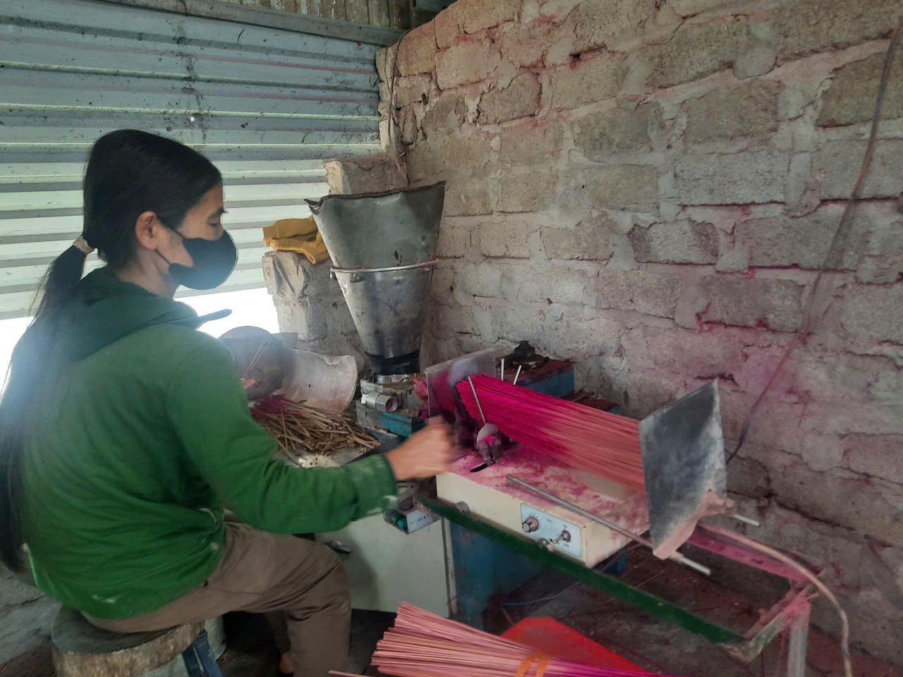แม้จะมีการใช้เครื่องจักรในขั้นตอนต่างๆ แต่สำหรับหลายครอบครัวในหมู่บ้านบ๊าวเอินก็ชอบทำธูปด้วยมือ |