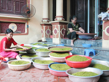 | การทำถั่วงอกที่ตำบลเตื่อเลืยมชาญกรุงฮานอย |