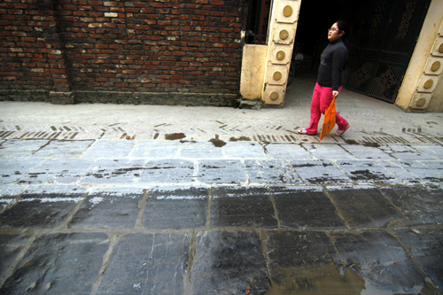 ![]() ถนนหลายสายในหมู่บ้านฝู่ลิวได้รับการก่อสร้างด้วยหินสีเขียว
