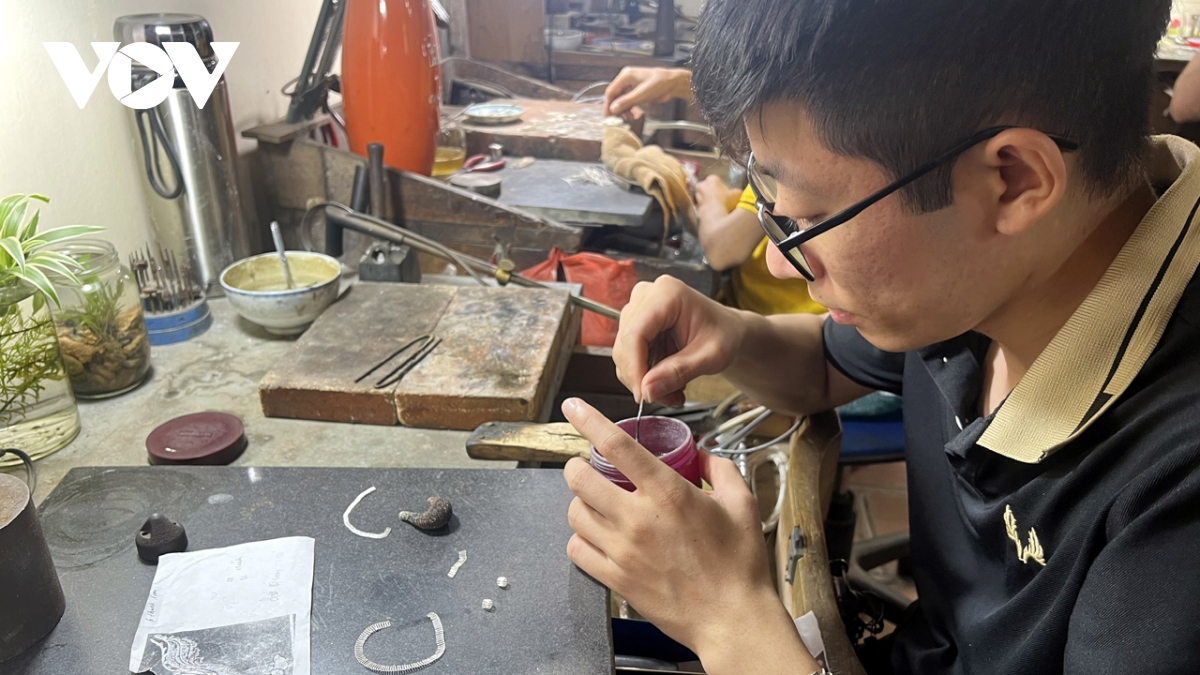 อาชีพทำเครื่องเงินแบบยัดลายในหมู่บ้านดิ่งกง เขตหว่างมาย กรุงฮานอยมีมาตั้งแต่ศตวรรษที่ 7 |