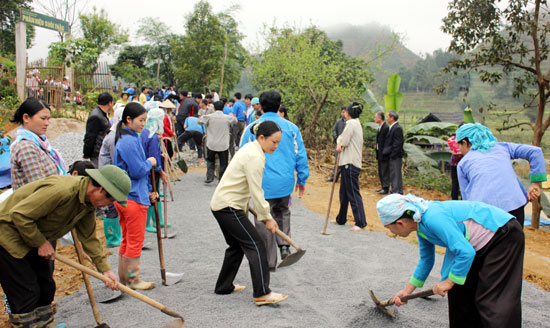 เส้นทางในหมู่บ้านหล่างก๋าว ต.ซวนกวาง รวมระยะทาง5กิโลเมตรที่เพิ่งเปิดใช้งานได้สร้างความปลื้มปิติยินดีให้แก่ชาวท้องถิ่นเพราะเป็นผลงานชิ้นแรกจากความร่วมมืออย่างมีประสิทธิภาพระหว่างรัฐกับประชาชนในโครงการสร้างสรรค์ชนบทใหม่ ยอดเงินลงทุนใช้ก่อสร้างเส้นทางนี้คิดเป็นเกือบ3พันล้านด่ง โดยรัฐอุปถัมภ์เงินครึ่งหนึ่งส่วนเงินที่เหลือมาจากการสนับสนุนของประชาชนโดยนอกจากสบทบเงินแล้ว เฉลี่ยแต่ละครอบครัวได้สนับสนุนค่าแรงทำงาน29วัน ซึ่งทั้งนี้เป็นผลมาจากการให้ความสำคัญต่อการส่งเสริมระเบียบประชาธิปไตยเพื่อสร้างความเห็นพ้องเป็นเอกฉันท์ในหมู่ประชาชน ซึ่งไม่เพียงแต่ต.ซวนกวางเท่านั้นหากท้องถิ่นอีกหลายแห่งในอ.บ๋าวทั้งยังได้ปฏิบัติกระบวนการนี้เป็นอย่างดีในการสร้างสรรค์ชนบทใหม่ ทำให้ชาวบ้านเข้าใจและเข้าร่วมอย่างเต็มที่ทั้งอาสาเข้าร่วมกิจกรรม สมทบเงินทุนหรือมอบพื้นที่เพื่ออำนวยความสะดวกให้แก่โครงการ นาย เจิ่นกวางเจือง ประธานคณะกรรมการประชาชนต.ฟู๊หยวนอ.บ๋าวทั้งกล่าวว่า นับตั้งแต่มีการจัดตั้งคณะกรรมการชี้นำและแบ่งหน้าที่ปฏิบัติ ก็สามารถระดมกำลังจากทุกหน่วยงานและจากภาคประชาชนเข้าร่วม หากจะทำอะไรก็ปรึกษาหารือให้ประชาชนรับรู้และเข้าใจเพราะผู้ที่ได้รับประโยชน์จากการสร้างสรรค์ชนบทใหม่ก็คือประชาชน