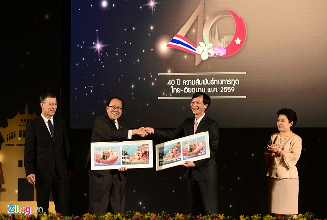 เอกอัครราชทูตเวียดนามประจำประเทศไทย เหงวียนเติ๊ดแถ่ง (คนที่ 2 จากขวา) เข้าร่วมงานฉลองครบรอบ 40 ปีการสถาปนาความสัมพันธ์ทางการทูตระหว่างเวียดนามกับไทย ณ กรุงเทพฯ (Photo: zing.vn)