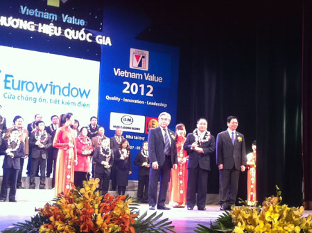 | ท่านNguyễn Cảnh Hồng ผู้อำนวยการเครือบริษัท Eurowindow รับสัญญลักษณ์เครื่องหมายการค้าระดับชาติปี๒๐๑๒(Photo:Internet) |