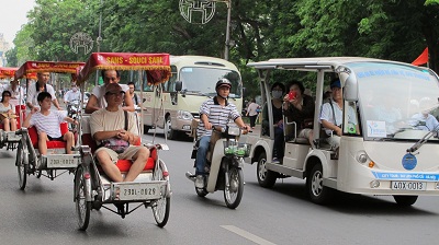 | นักท่องเที่ยวนั่งรถสามล้อในกรุงฮานอย(Photo: dulich ) |