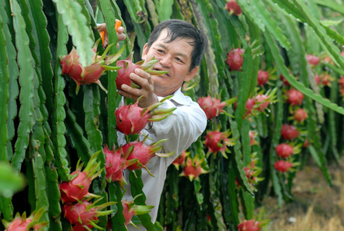 | เกษตรกรจังหวัดลองอานดูแลแก้วมังกรที่ส่งออก |