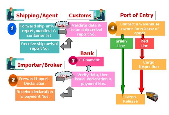 บนพื้นฐานแห่งยุทธศาสตร์การพัฒนาศุลกากรจนถึงปี 2020 แผนการปฏิรูปและพัฒนาหน่วยงานศุลกากรให้มีความทันสมัยช่วงปี 2011-2015 ควบคู่กับความคาดหวังในการสร้างก้าวกระโดดในการปฏิรูประเบียบราชการ ตั้งแต่วันที่ 1 เมษายนปี 2014 เป็นต้นไป ทบวงศุลกากรจะประยุกต์ใช้ระบบทำระเบียบศุลกากรอัตโนมัติและระเบียบการ one stop service แห่งชาติเพื่อสนับสนุนการทำระเบียบศุลกากรสำหรับสินค้านำเข้าส่งออก หรือ VNACCS/VCIS - Automated Cargo Clearance System ปัจจุบัน ระบบศุลกากรอิเล็กทรอนิสก์เพียงเน้นถึงขั้นตอนในระหว่างการทำและหลังการทำระเบียบศุลกากรในขณะที่ระบบ VNACCS จะครอบคลุมมากกว่า เช่น การลงทะเบียบรายการสินค้าปลอดภาษี ระเบียบการประยุกต์ใช้ร่วมสำหรับสินค้าทุกชนิดและการบริหารสินค้านำเข้าส่งออกชั่วคราว ระบบ VNACCS ยังสามารถเชื่อมต่อกับกระทรวงและหน่วยงานบางแห่งตามระเบียบการ one stop service โดยสำนักงานศุลกากรจะส่งข้อมูลการขอใบอนุญาตของสำนักงานที่เกี่ยวข้องและจะได้รับแจ้งออกใบอนุญาตผ่านระบบนี้ได้ด้วย