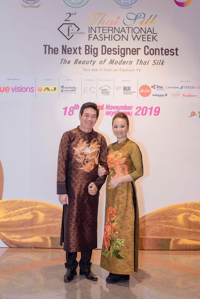 ท่านเหงวียนหายบั่งห์ เอกอัครราชทูตเวียดนามประจำประเทศไทยและภริยาในชุดประจำชาติเวียดนามที่เข้าร่วมงานมหกรรมผ้าไหม 2562 |