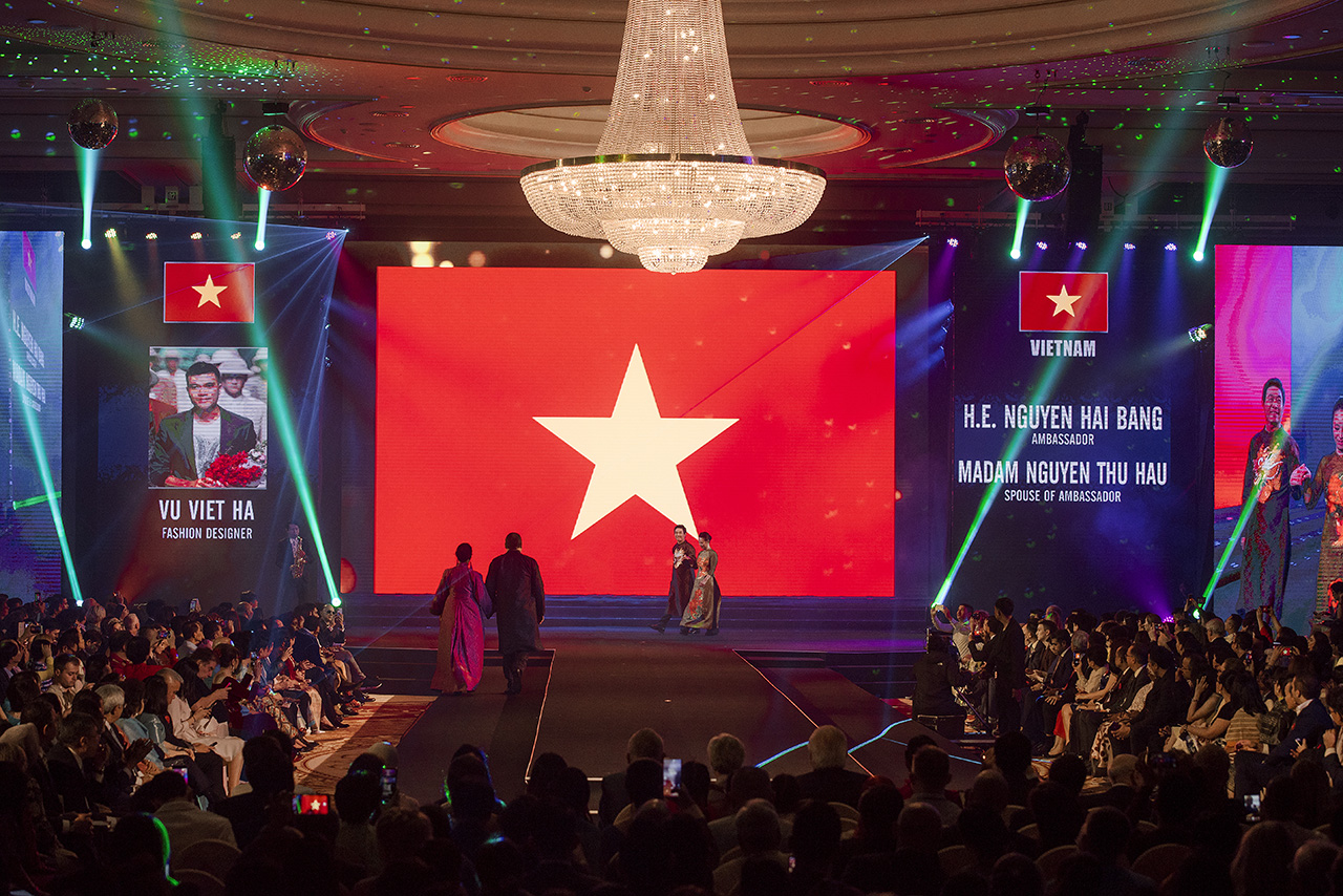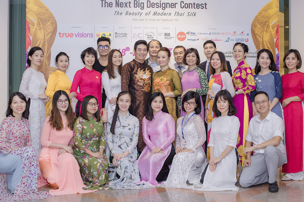 เอกอัครราชทูตเวียดนามพร้อมภริยาและทีมงานสถานทูตและนักออกแบบเวียดนามถ่ายรูปในงาน |