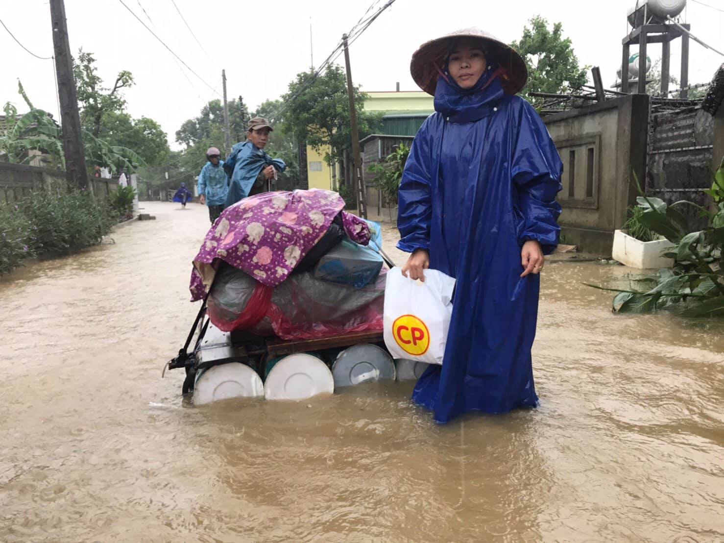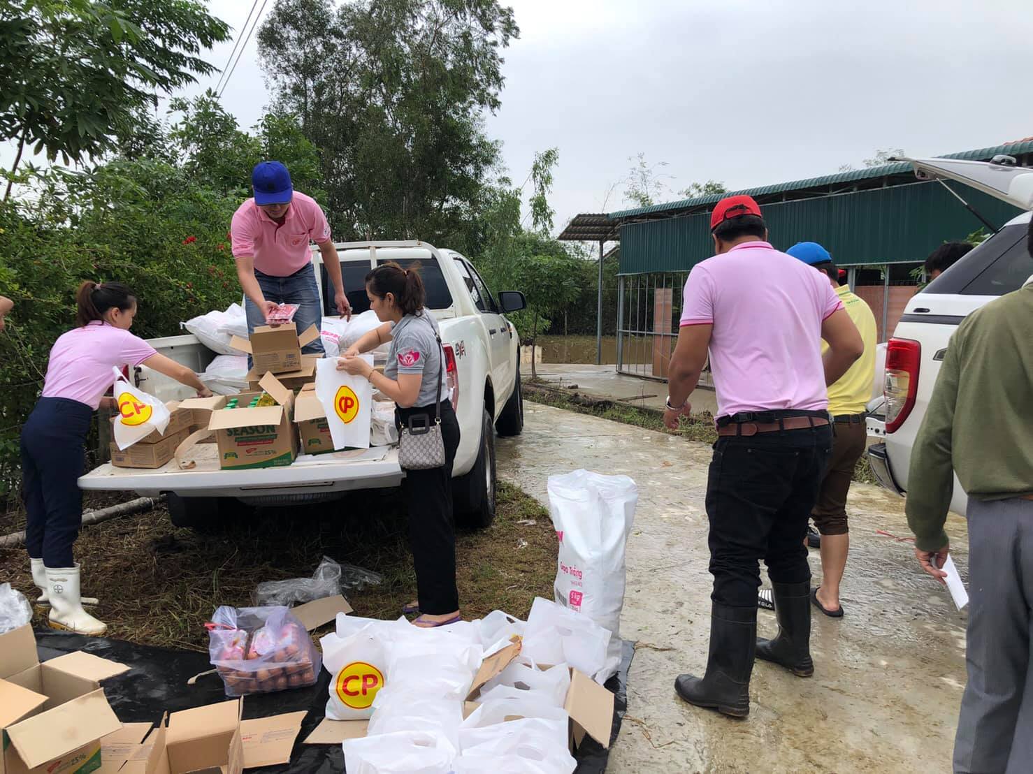 เช้าวันที่ 22 ตุลาคม ณ สำนักงานคณะกรรมการประชาชนจังหวัดกว๋างจิ บริษัทซีพีเวียดนามได้มอบสิ่งของบรรเทาทุกข์ที่เป็นไส้กรอก 2 ตันและไข่ 1 หมื่นฟองเพื่อช่วยเหลือผู้ประสบภัย โอกาสนี้ตัวแทนของบริษัทก็ได้ร่วมกับทางการท้องถิ่นลงพื้นที่อำเภอเหละ ถวี จังหวัดกว๋างบิ่ง เพื่อมอบสิ่งของบรรเทาทุกข์ 100 ชุดให้แก่ประชาชนท้องถิ่น.