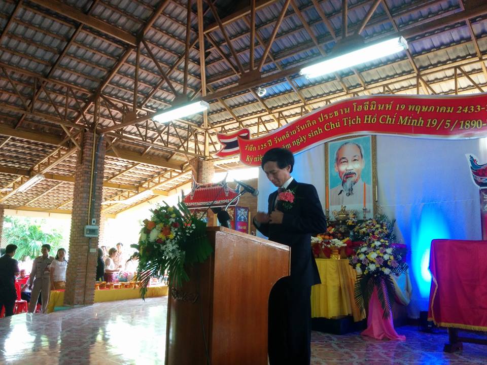 ![]() นาย เหงวียนเติ๊ตแถ่ง เอกอัครราชทูตเวียดนามประจำประเทศไทยกล่าวปราศรัยในพิธีฉลองครบรอบ 125 ปีวันคล้ายวันเกิดของประธานโฮจิมินห์ ณ จังหวัดนครพนม