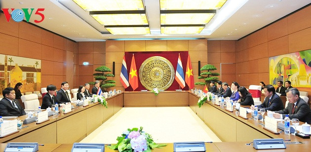 ในกรอบการเยือนเวียดนามในระหว่างวันที่ 13 – 16 สิงหาคมตามคำเชิญของนาง เหงวียนถิกิมเงิน ประธานสภาแห่งชาติเวียดนาม นาย พรเพชร วิชิตชลชัย ประธานสภานิติบัญญัติแห่งชาติไทยได้เจรจากับนาง เหงวียนถิกิมเงิน ประธานสภาแห่งชาติ เข้าเยี่ยมครวะท่าน เหงวียนซวนฟุก นายกรัฐมนตรีและพบปะกับกลุ่มส.ส.มิตรภาพเวียดนาม-ไทย ในการพบปะต่างๆ ทั้ง 2 ฝ่ายได้เห็นพ้องกันว่า ในเวลาที่จะถึง รัฐสภาทั้ง 2 ประเทศจะผลักดันการตรวจสอบการปฏิบัติข้อตกลงความร่วมมือระหว่างรัฐบาลเวียดนามกับไทย พร้อมทั้งหารือถึงการผลักดันการลงนามบันทึกช่วยจำเพื่อความเข้าใจเกี่ยวกับความร่วมมือด้านการเกษตรและข้อตกลงเปิดโทรศัพท์สายด่วนในกิจกรรมการทำประมงระหว่างสองประเทศโดยเร็ว